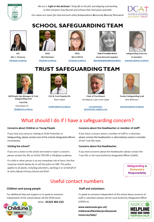 At St John’s Meads CEP, we believe that safeguarding is everyone’s responsibility and that everyone has the right to be happy, to be safe and to learn.