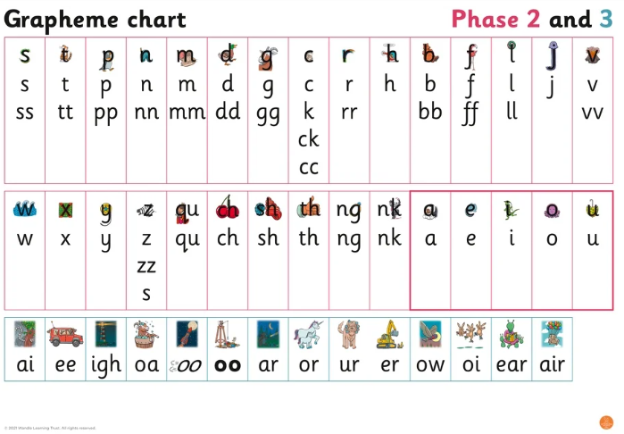 Practising the sounds that have been learnt in school that week plus tricky words/spellings